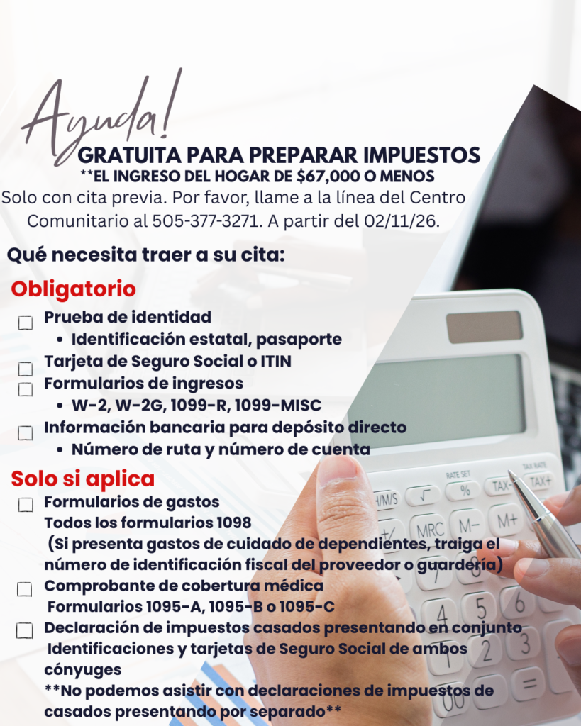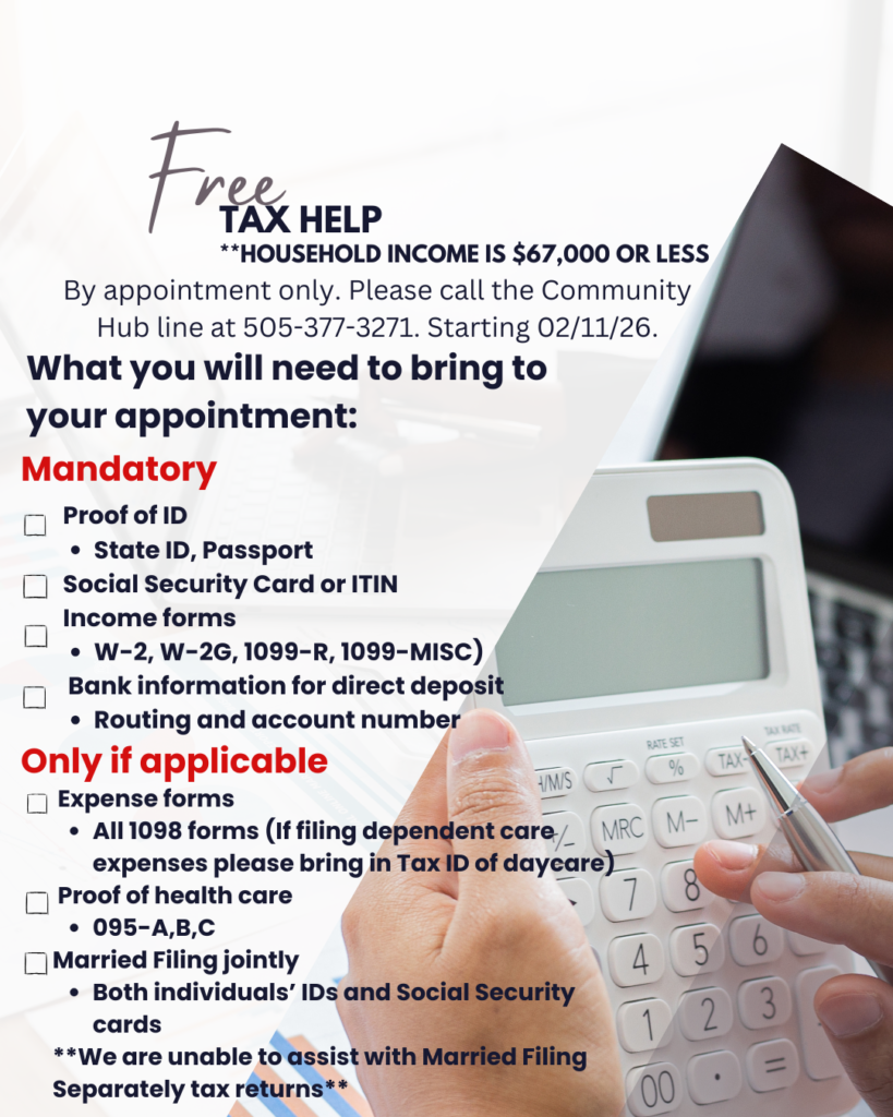For assistance outside walk-in hours or any questions regarding programming, please call the Community Hub line at (505) 377-3271